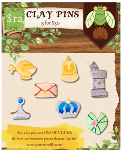My work has a heavy focus on fantasy, mythology, and cryptozoology. Animated shows like Gravity Falls and game series like The Legend of Zelda had a heavy influence on me. I remember reading the Ology book series as a kid, pouring over detailed illustrations, and adoring the dedicated worldbuilding. Through Cicada Hollow i'm working to build my own universe full of whimsical creatures and meaningful stories!I specialize in fiber arts with a focus on crocheted plushies. My crochet pieces are stitched from original patterns I made myself and include hand-stitched felt details and beadwork. My most popular crocheted products are my chibi plushies of various mythical species, as well as my variety of possum and bug keychains.My merchandise is a variety of prints, stickers, and handmade clay goods. I pride myself in making detailed pieces full of symbolism and bold shapes. I adore picking apart art and scenes from my favorite media and finding all the hidden meanings in the visuals and language. I hope to use my art to bring people that same experience!